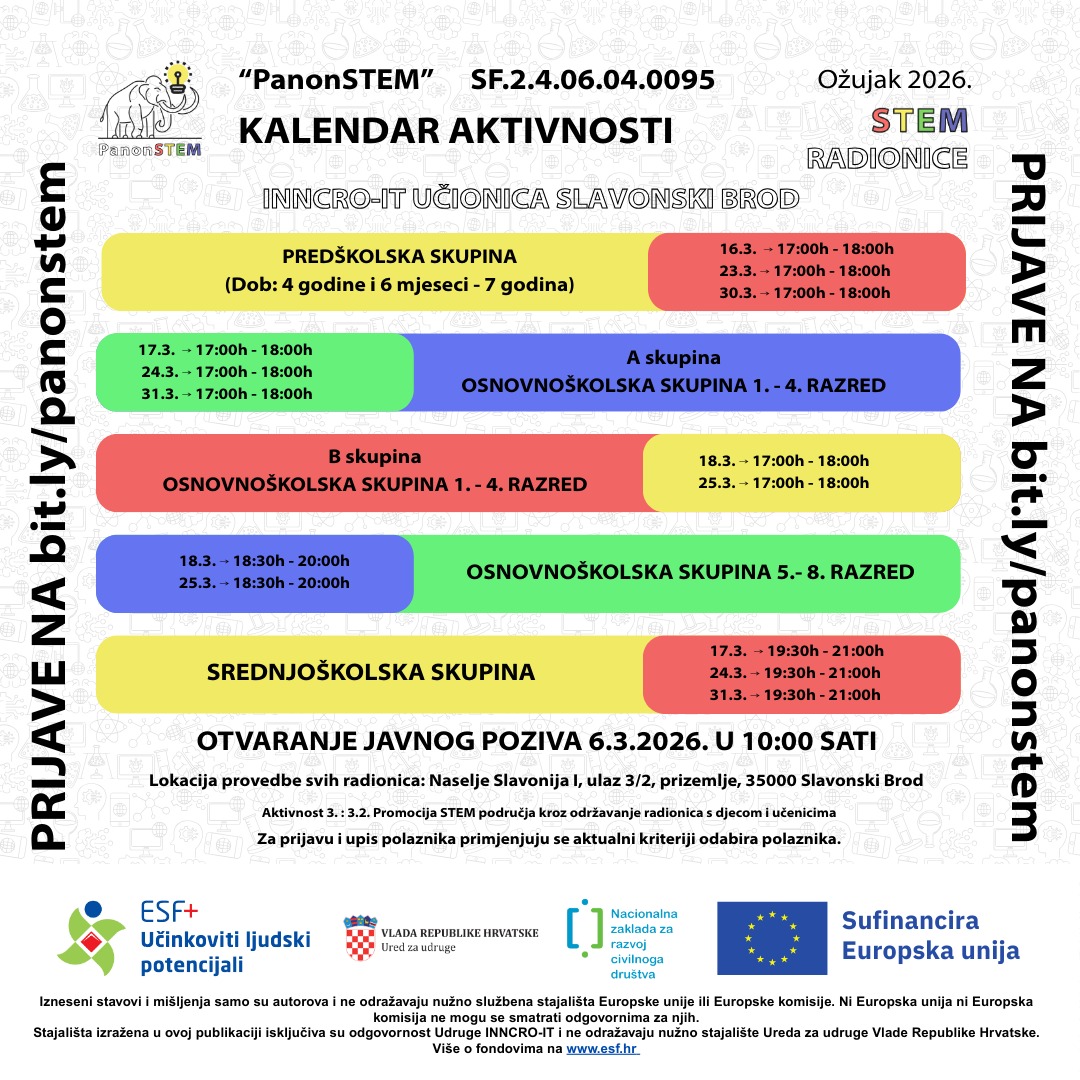 U ožujku nastavljamo s radionicama u našoj učionici u Slavonskom Brodu, a pripremili smo i STEM DAN na javnom mjestu – dođite, isprobajte i prijavite se! ![]()